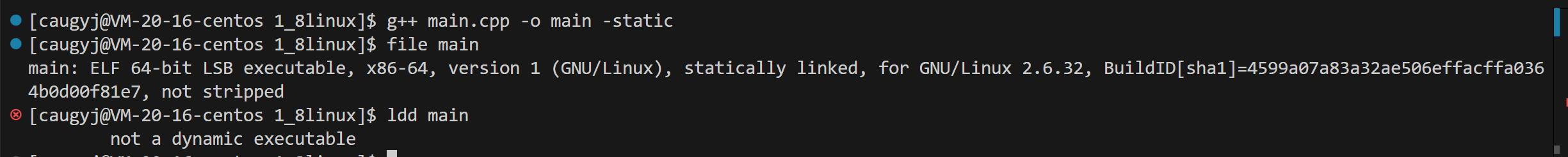 statically linked----静态链接。同时ldd也显示不是动态可执行。
