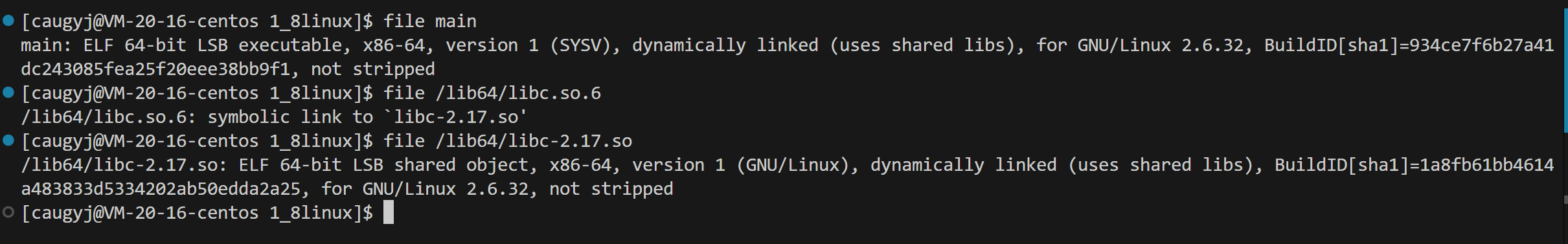 依赖的就是libc.so.6, 这是个软链接。C标准库,在/lib64/下存在着大量的动态库,这也是系统默认的查找路径,后面还会提。