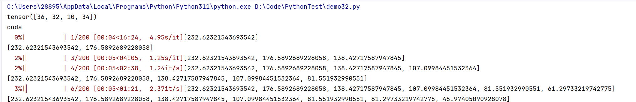 for epoch in tqdm(range(200)): # 开始训练