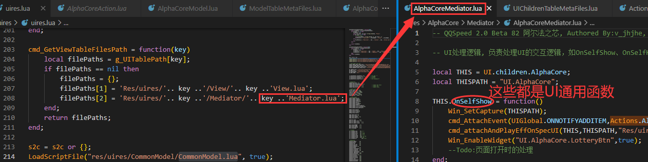 (3)只是在加载UI.children.AlphaCore的时候,会顺便把view对应的ui函数接口一并加载: