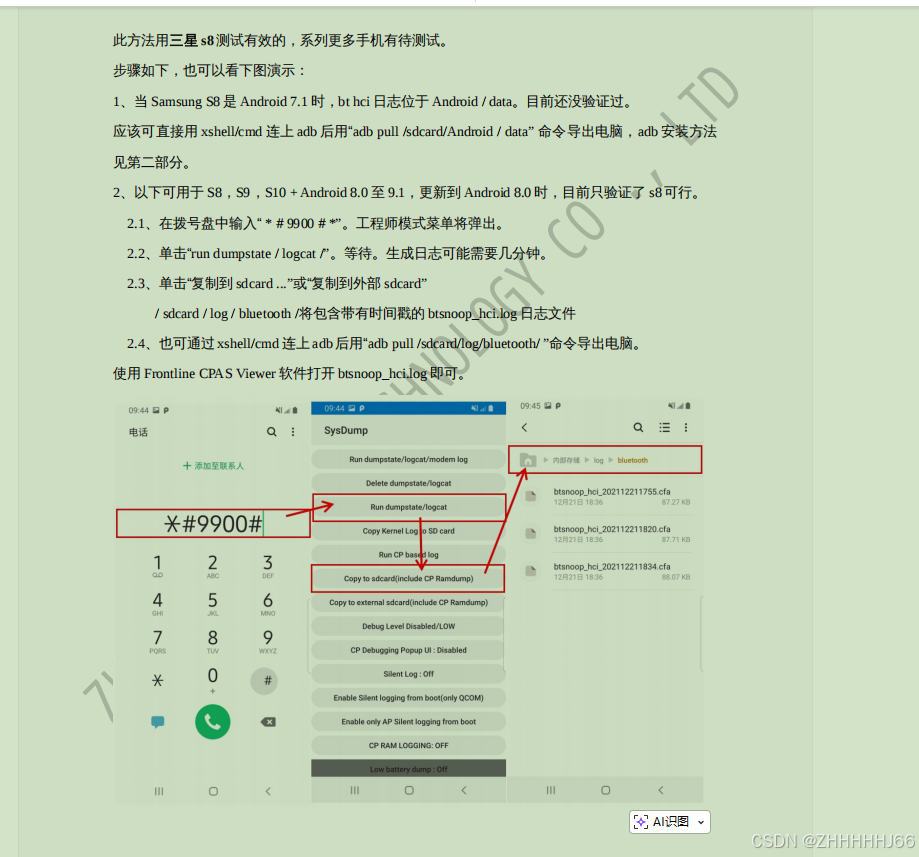第二个步骤尾部流程存在问题 ,不要导出cfa文件了 亲测没有用,直接去找导出的zip文件,解压缩后直接拿到btsnoop_hci.log文件