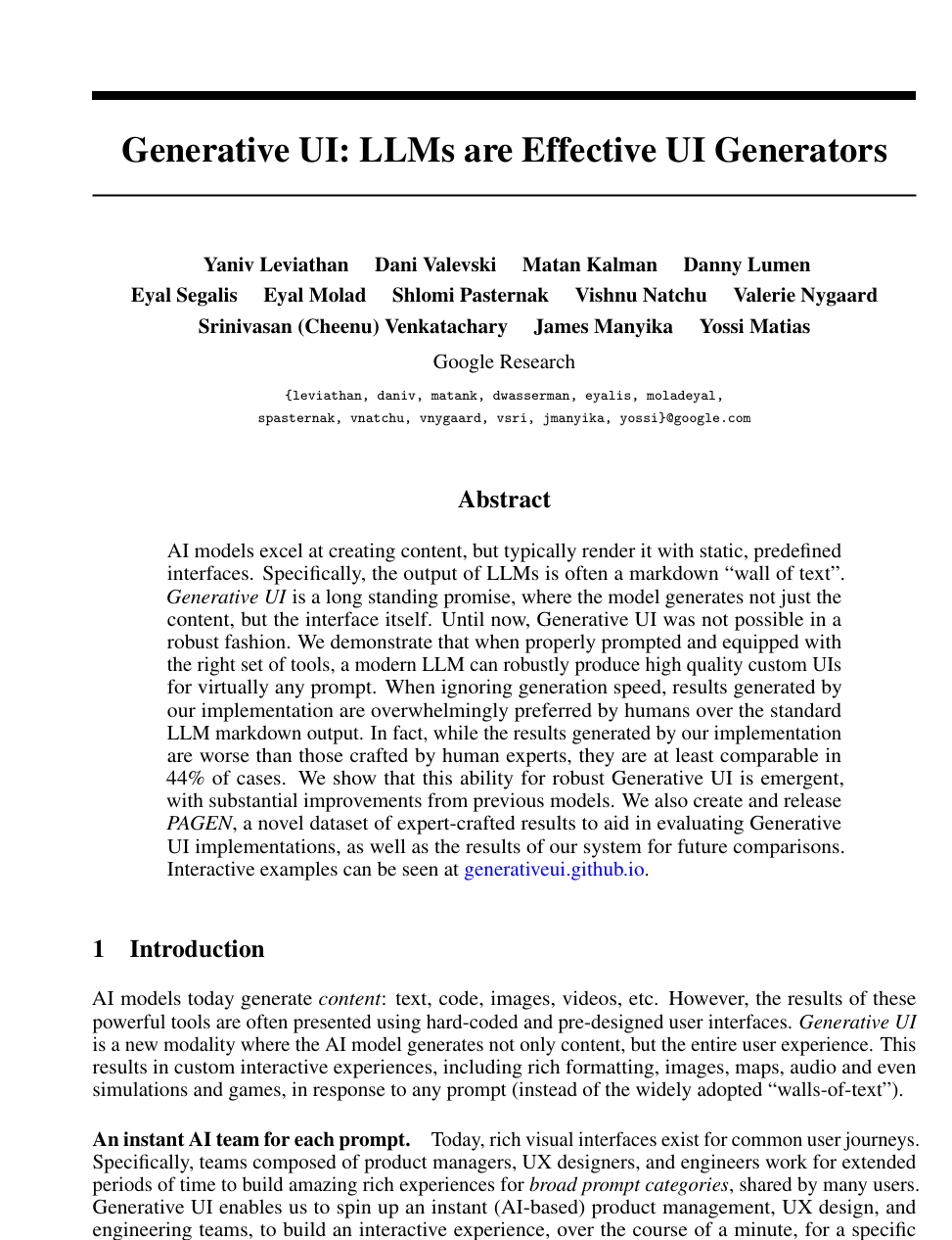 最新的AI +UI 都是基于生成式UI技术来完成的,简单介绍一下生成式UI,生成式UI技术始于Google 2025年11月18号写的一篇论文,介绍了生成式UI的技术框架,感兴趣的可以参考下面这篇论文