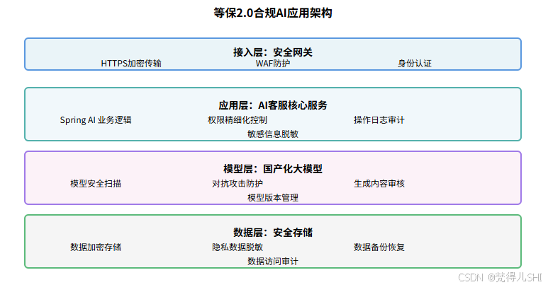 - 合规层面:理解等保 2.0 对 AI 系统的要求,掌握数据安全、模型安全的实现方法。