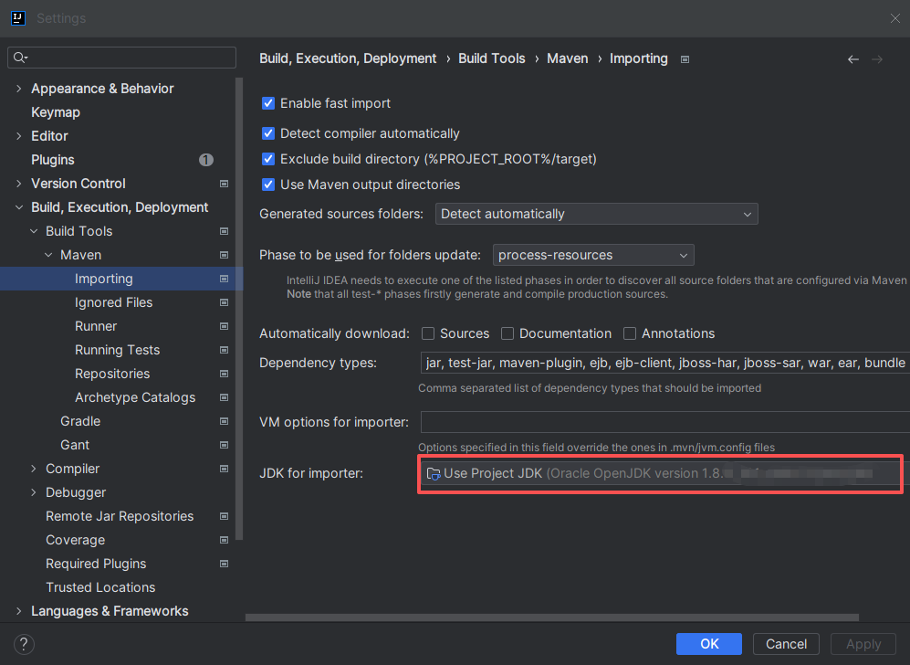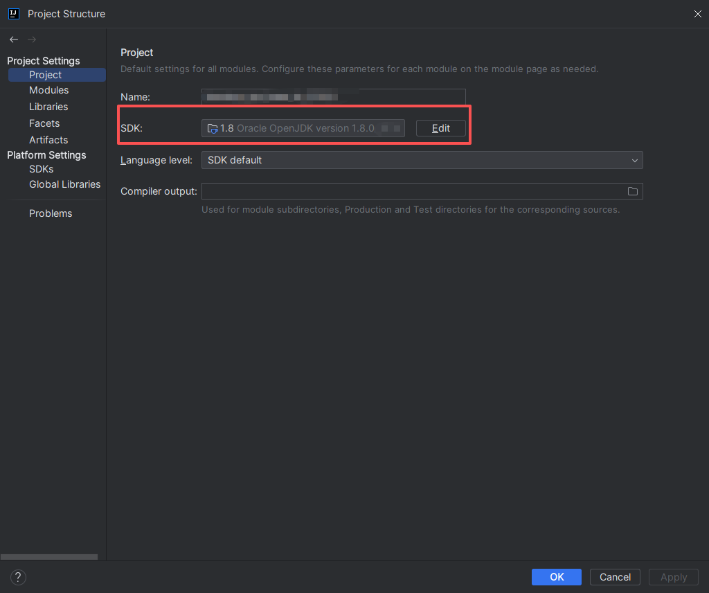 JDK选择项目对应的版本,然后点击 apply,如下图