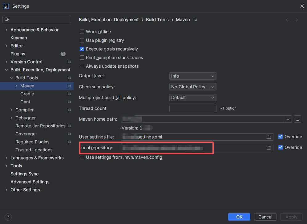 行外将项目,编译构建通过后,找到仓库地址 local repository(ctrl+alt+s快捷键),然后将仓库压缩后,传到行内
