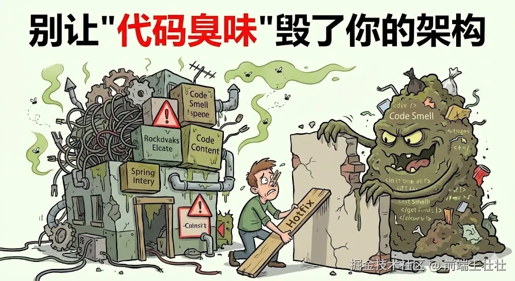 "代码臭味"(Code Smell)这个词不是说代码真的有味儿(虽然有时候看代码确实想吐),而是指代码结构中某些特征暗示了深层次的设计问题。