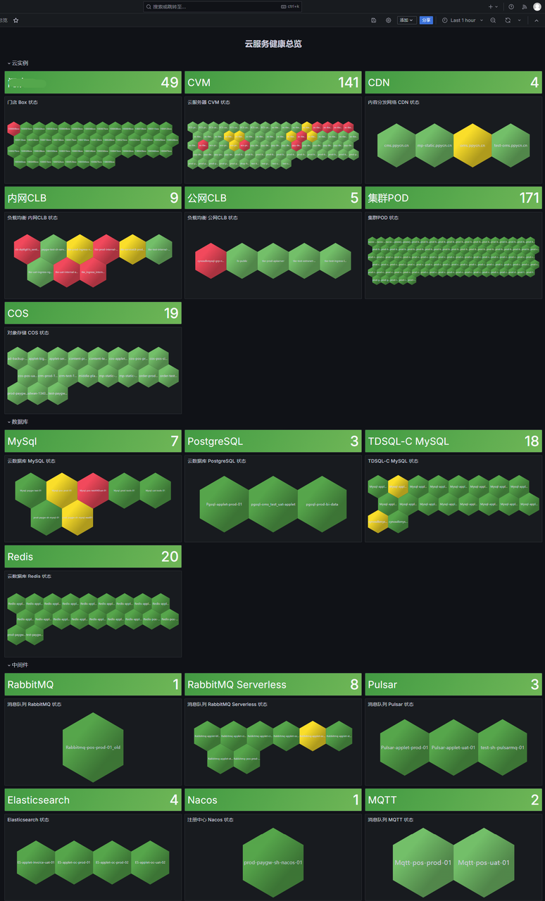 在云原生时代,有效的监控可视化已成为运维工作的核心。传统的监控面板往往信息过载,关键指标难以快速识别。今天,我们将介绍如何通过Grafana的Polystat面板与腾讯云可观测平台实现深度融合,打造直观高效的云服务健康状态监控大屏。