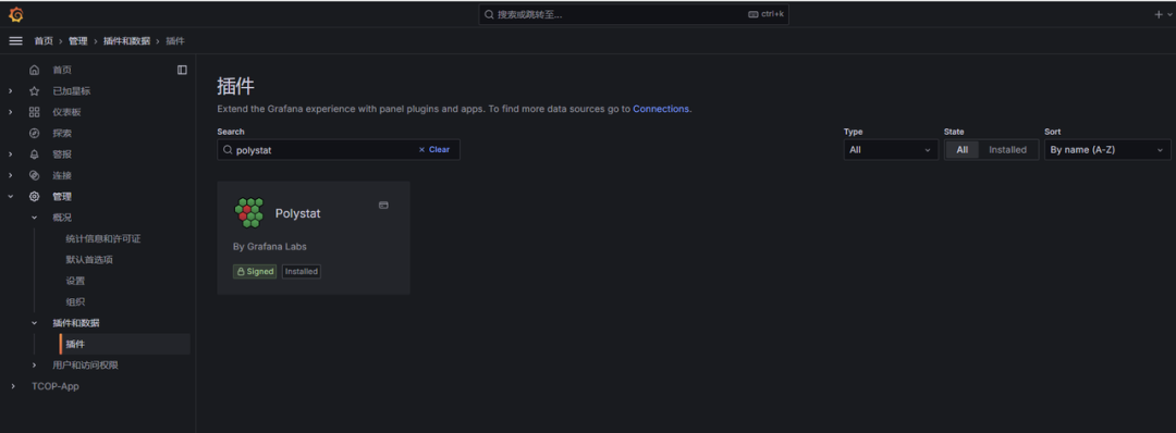 在Grafana中插件中搜索"polystat"进行安装。