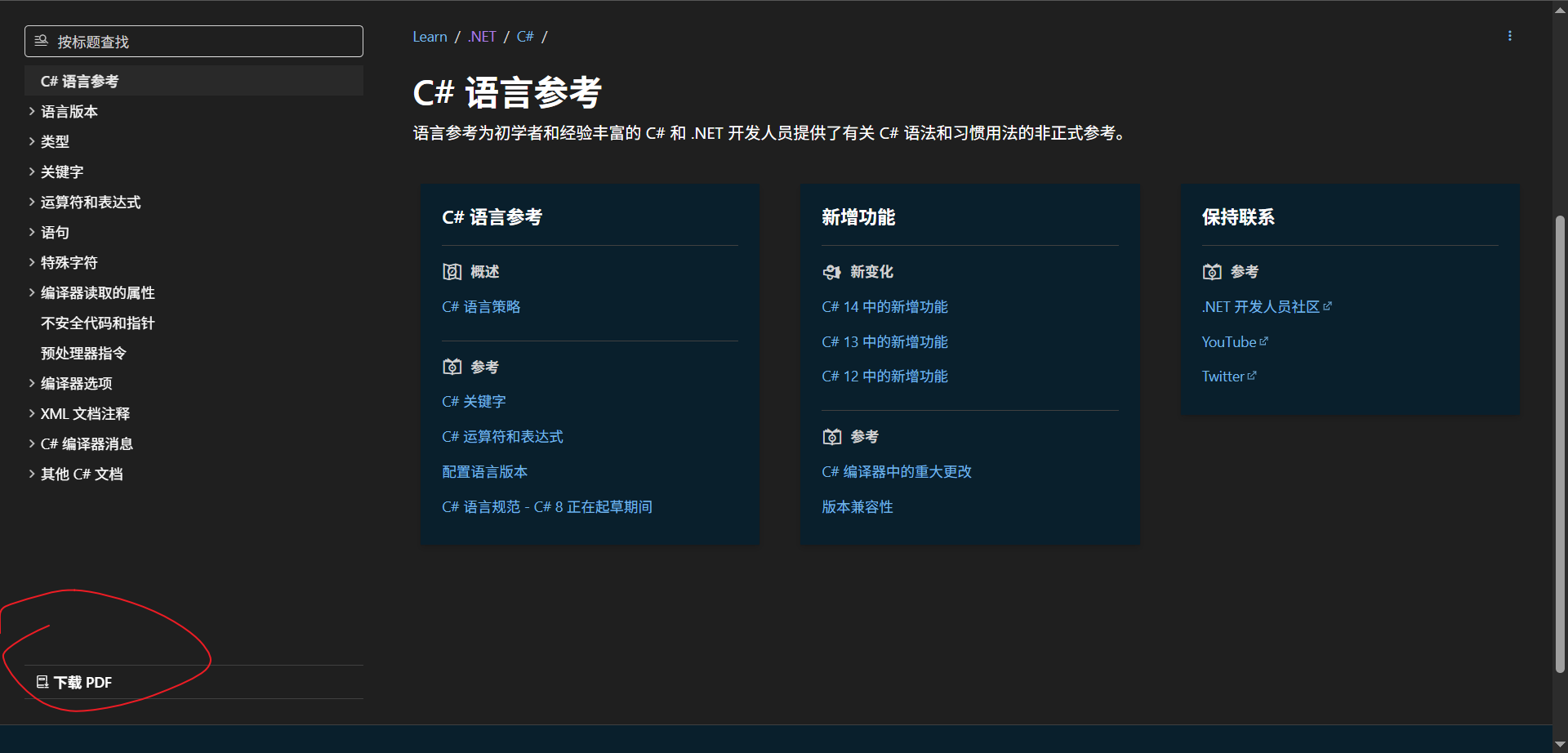 C#微软文档:https://learn.microsoft.com/zh-cn/dotnet/csharp/language-reference/