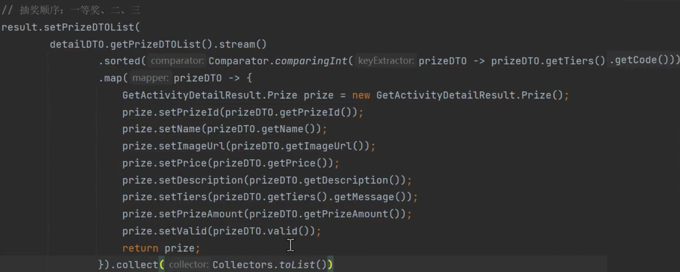 这里就是先对detailDTO里面的prizeList先根据code排序然后再做映射
