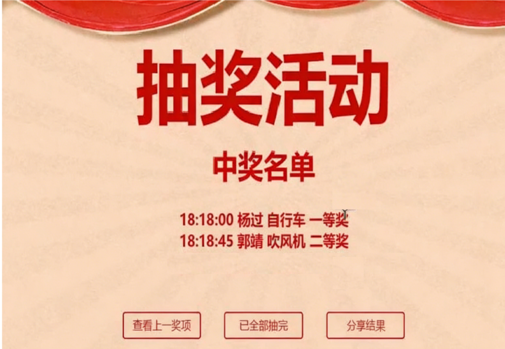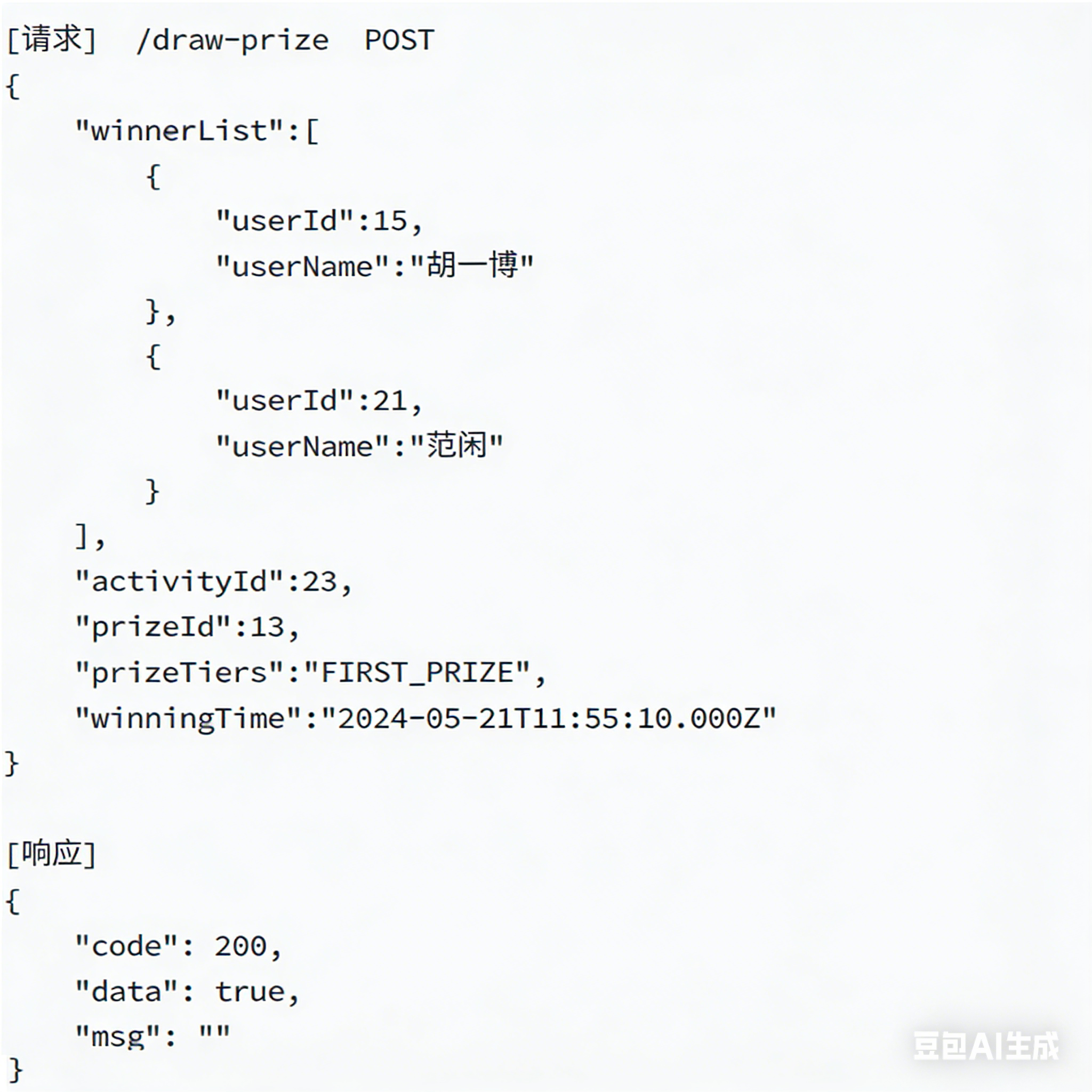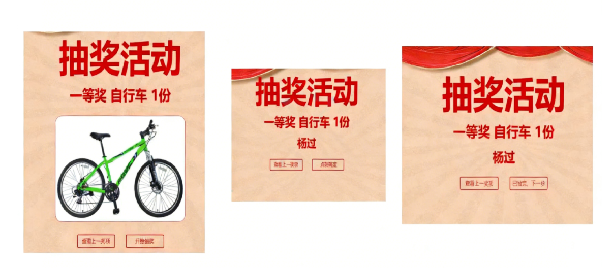 文字已经总结了我们通过前端的ui图我们可以知道,前端主要是做1.控制抽奖流程,2.展示奖品信息,3.抽奖此时名字会闪动,4,确定中奖人(确定中奖人是由前端完成这个不要搞混了),点击下一步如果后面还有奖品重复以上操作,没有就会展示中奖名单 后端主要是 1给前端提供完整的活动信息来让前端进行展示 2当前端传来中奖人信息以后,后端需要将他们保存起来,以及注意我们的活动,人员,奖品是有状态的,抽完之后需要扭转其中的一些状态 ,还有一点上面图片没有展示出来,就是抽完奖之后,我们是有个通知中奖的环节,有短信通知和邮箱通知 3 当全部抽完以后,后端需要给前端提供中奖名单给前端来展示。 以上就是我们通过ui需求来分析出来的一些前端后端需要做的事情