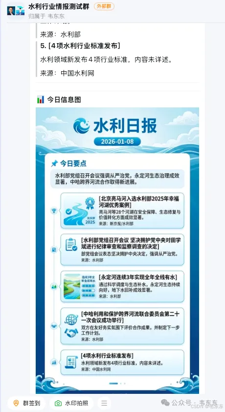大模型的成熟给这类需求解锁了一些新的可能。以前信息采集就只是采集,输出的是原始素材,后续的摘要、加工、分发还得人工来。现在可以做到多篇新闻自动聚合摘要、生成结构化的日报输出、甚至用多模态模型生成可视化的信息图。同样一份信息源,可以输出给网站、给 IM 群、给领导简报,形态各异但流程自动化。这就不只是信息采集了,而是知识库素材生成的第一步。