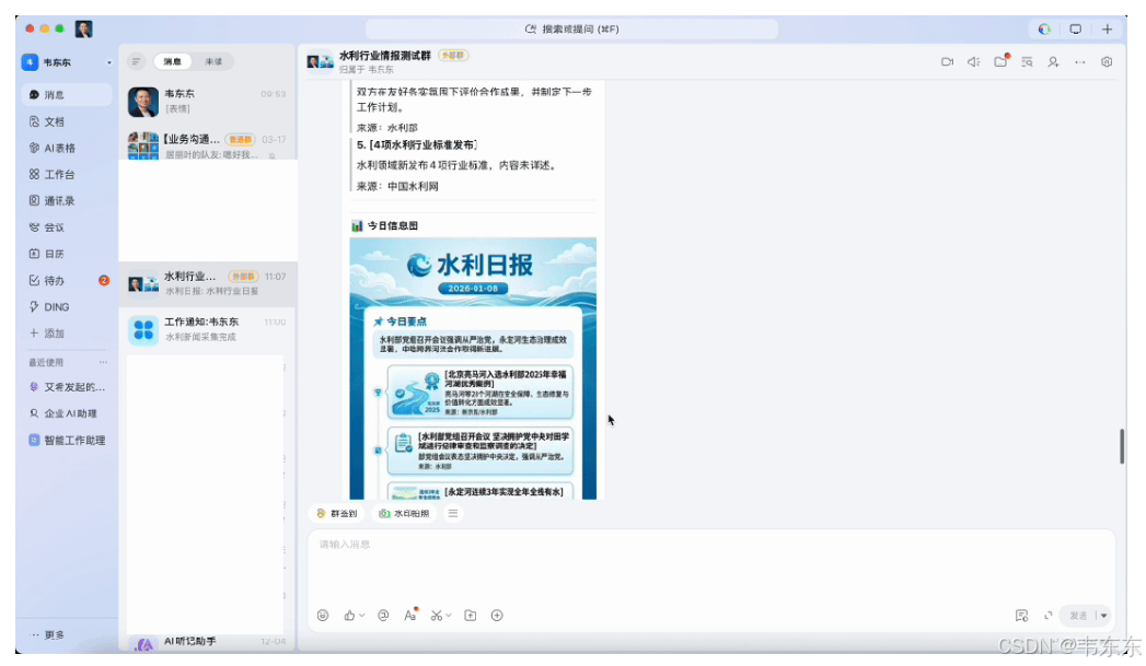 | 群机器人 | 群聊 | 在群设置中添加自定义机器人,获取 Webhook URL | 日报发布 |
