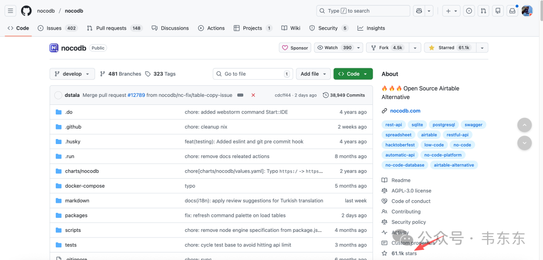 NocoDB开源地址:https://github.com/nocodb/nocodb