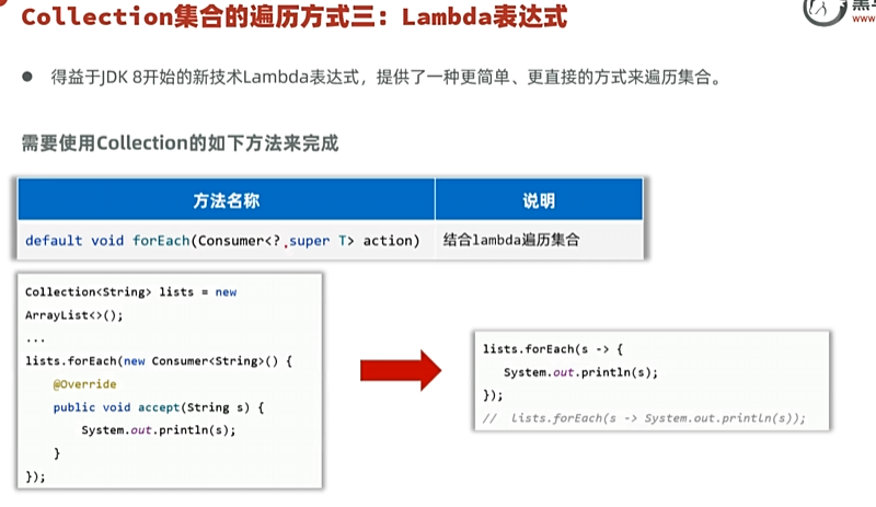 //目标:掌握Collection集合的遍历方式三:Lambda