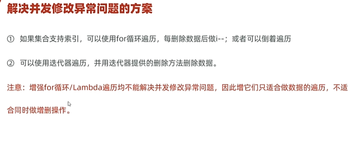 区别结论:如果要遍历集合并删除,这个集合又没有索引的情况下,只能用迭代器(增强for与Lambda无法实现),若集合有索引可以使用"i--"或倒着遍历;
