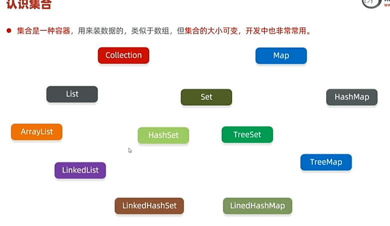 集合虽然看着多,但实际上用的只有几个,知道每一类集合的整体特点,学习每一类集合的功能即可