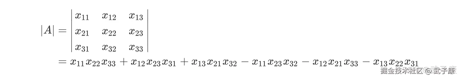 任何矩阵都可以有行列式,以一个 3*3 的行列式为例,我们来看看行列式如何计算的?