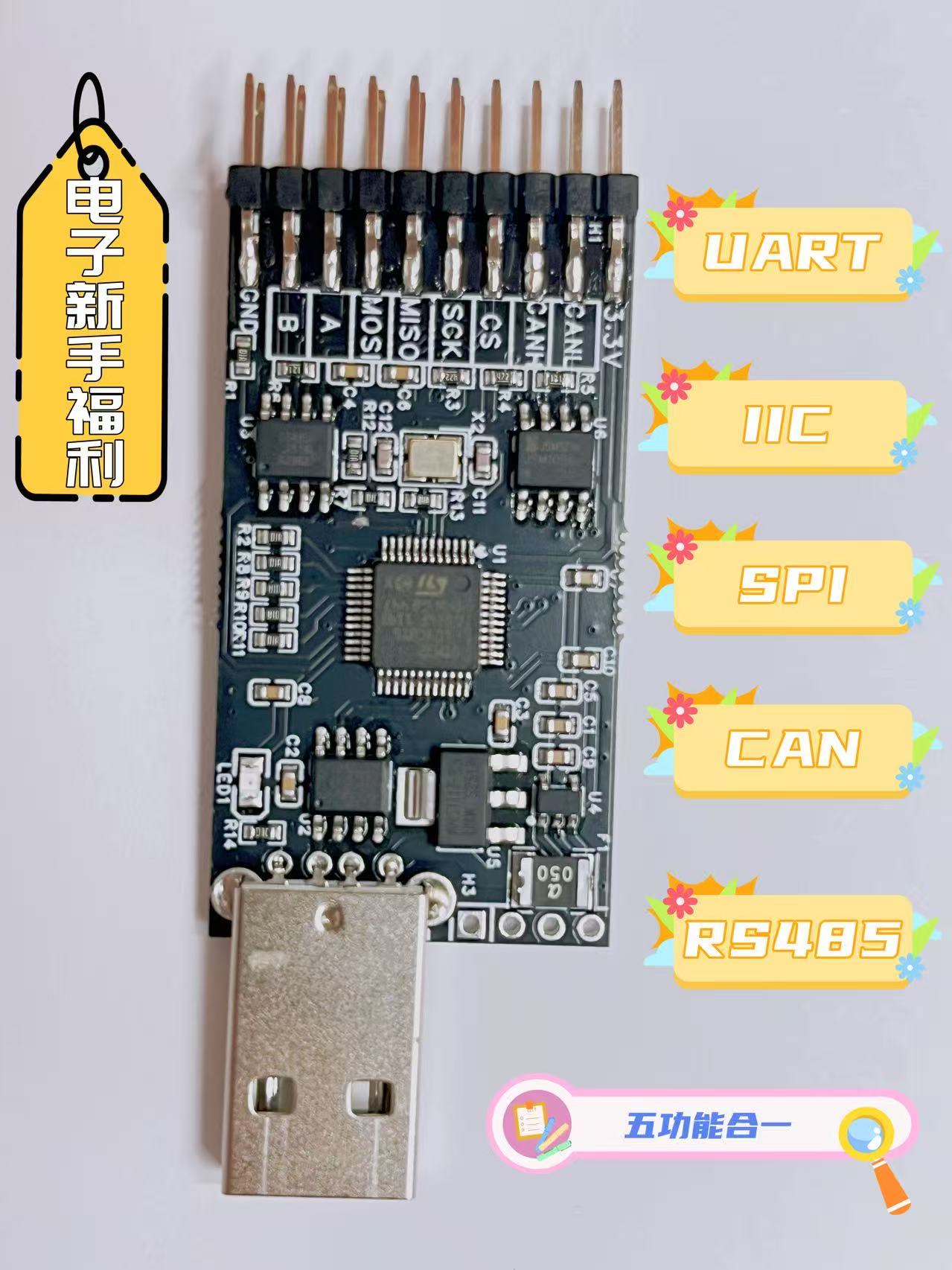 本模块是使用电脑USB口转接嵌入式软件开发常用的通信方式,包含TTL串口、CAN通信、RS485通信、SPI和IIC通信。