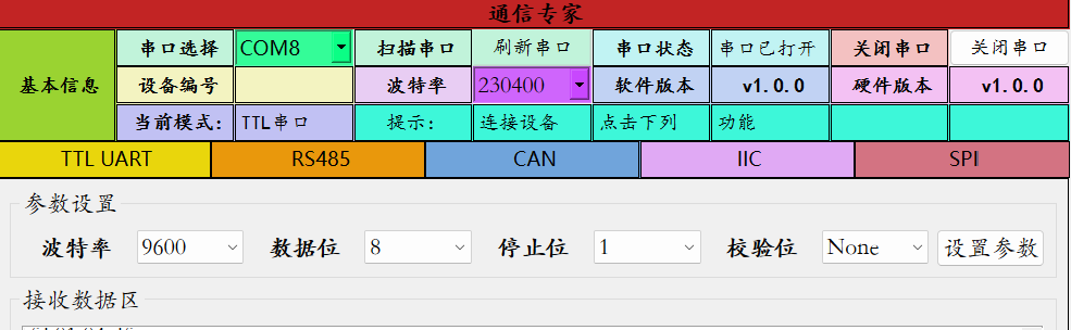 使用此模块只需要专注于操作上位机即可以使用这五种通信功能与外部设备进行通讯,而不用考虑各自通信的电平转换和通信电平协议等复杂的过程。为大家省掉搭建通信外围电路和调试IIC、SPI等通信协议的时间,而专注于实现业务功能的实现。