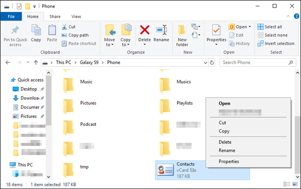 将 SD 卡上的联系人文件夹或**.vcf**文件复制并粘贴到您的计算机上。