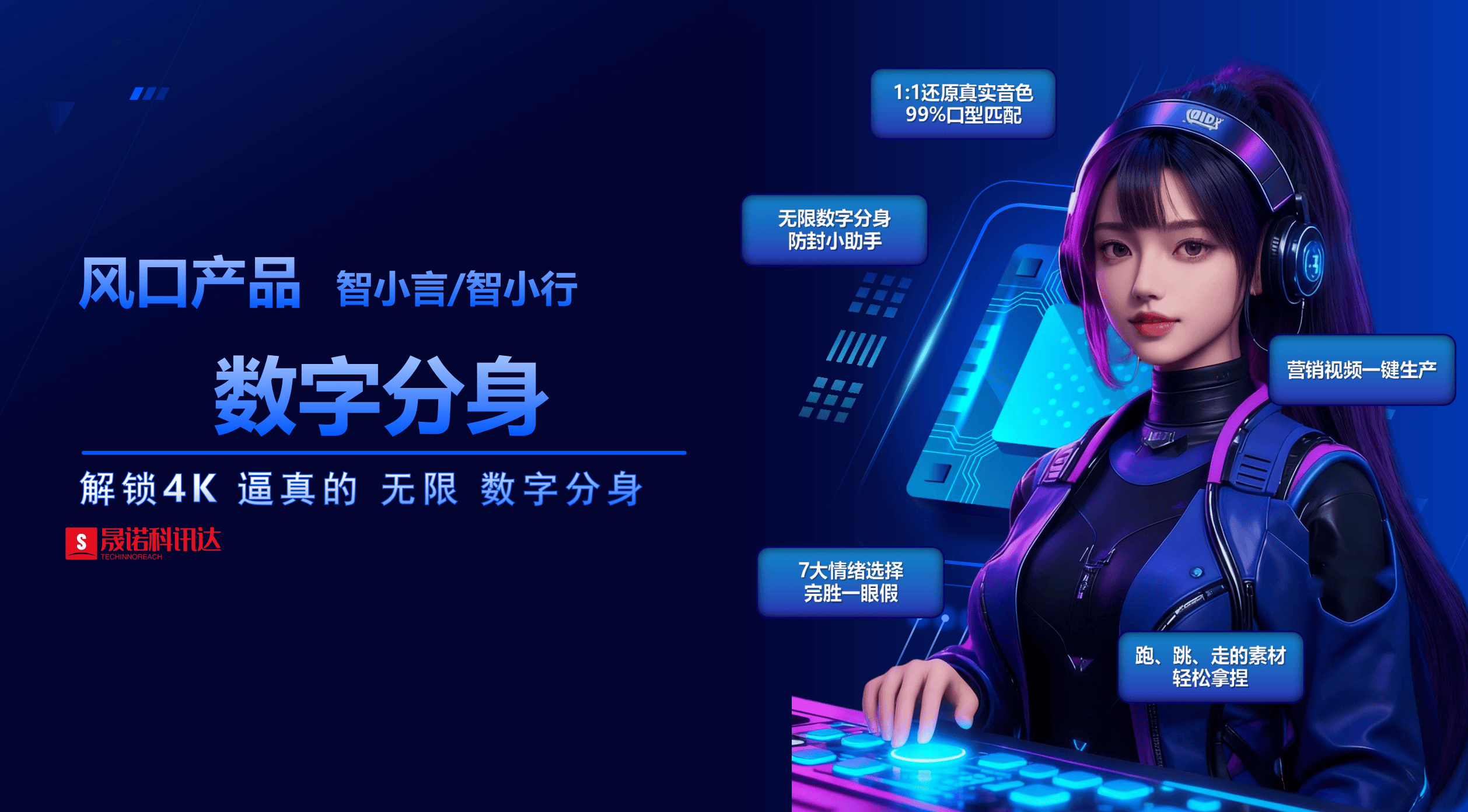 - 产出效率提升:高频优质输出是短视频引流关键,平台算法更青睐更新稳定的账号。晟诺科讯达产品能高效克隆形象与声音,精准还原真人外貌细节及音色,支持7种情绪模式调节,适配口播、带货、科普等多场景,文案修改后可直接重生成片,无需二次拍摄,大幅缩短内容迭代周期。