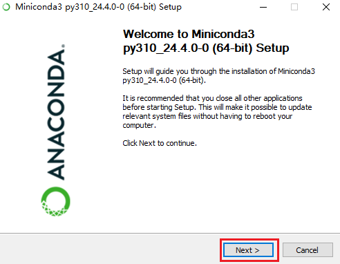- 【Mac M芯片】:https://repo.anaconda.com/miniconda/Miniconda3-py312_24.9.2-0-MacOSX-arm64.pkg