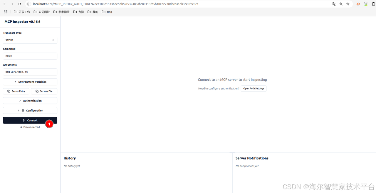 - 几秒钟后,你的浏览器会自动打开一个本地页面(通常是 http://localhost:6274 ),这就是MCP Inspector的操作界面。