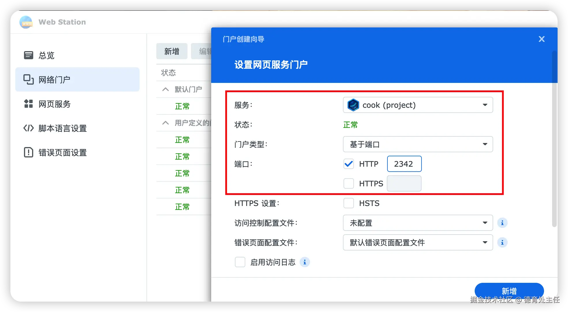 在"网页门户设置"里启用"通过 Web Station 设置网页门户"。