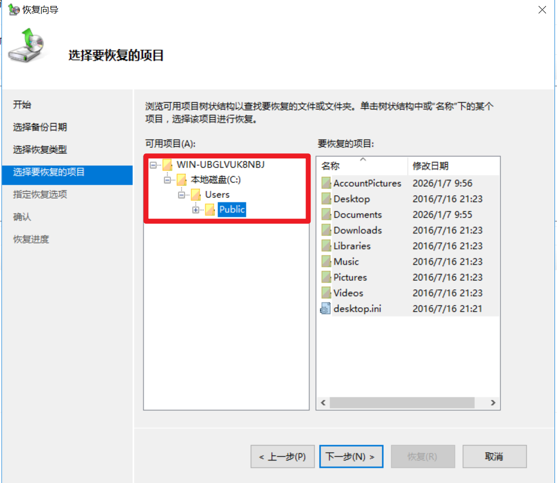 选择恢复文件