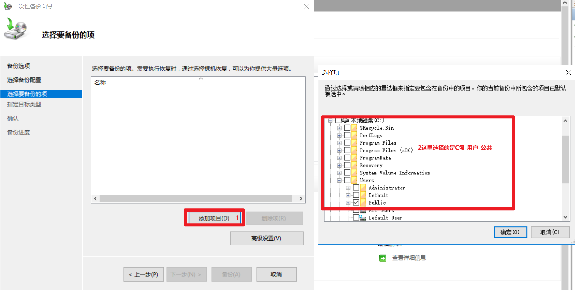 选择备份方式/内容