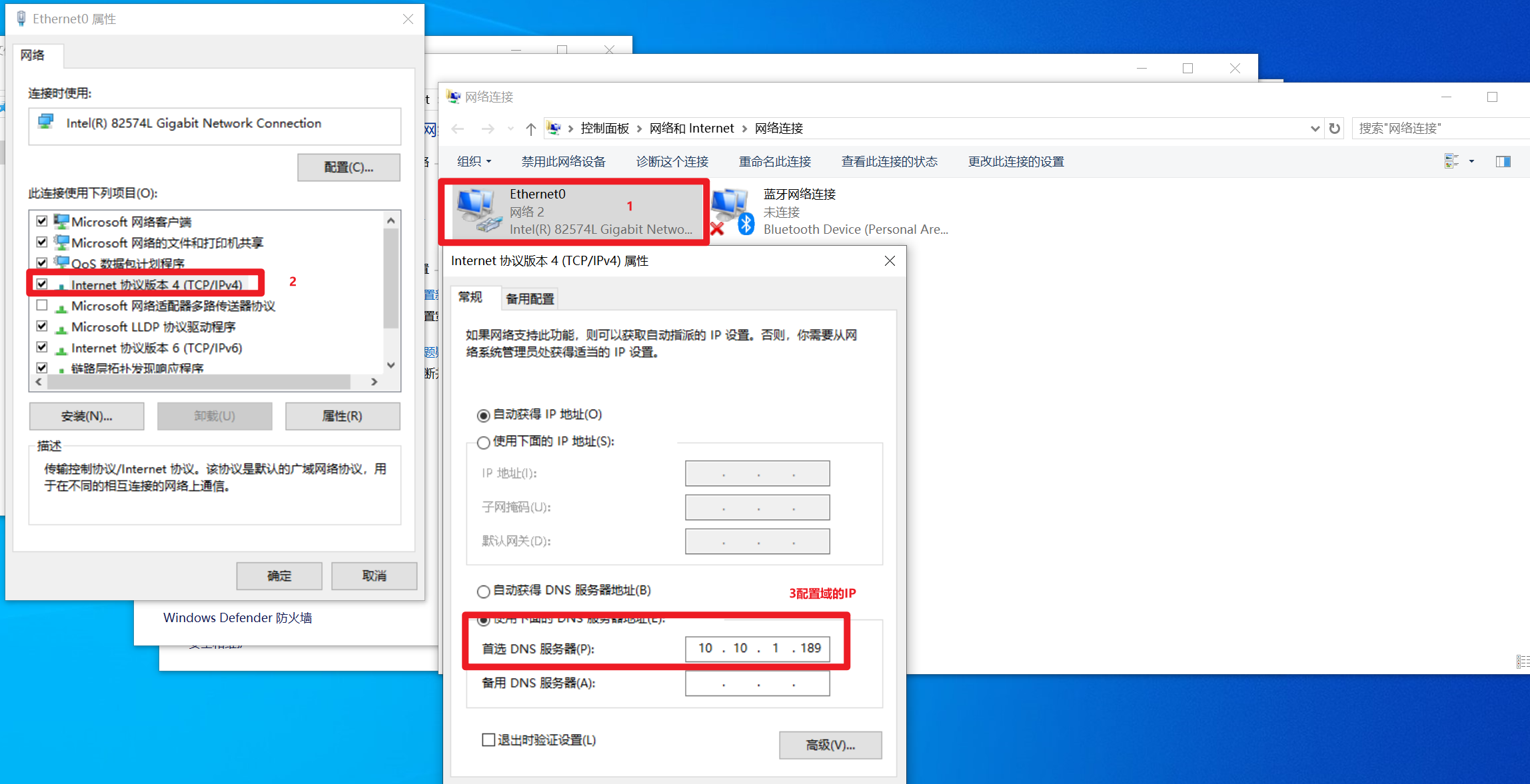 配置同一网段IP,win10首选DNS填Windows server的IP
