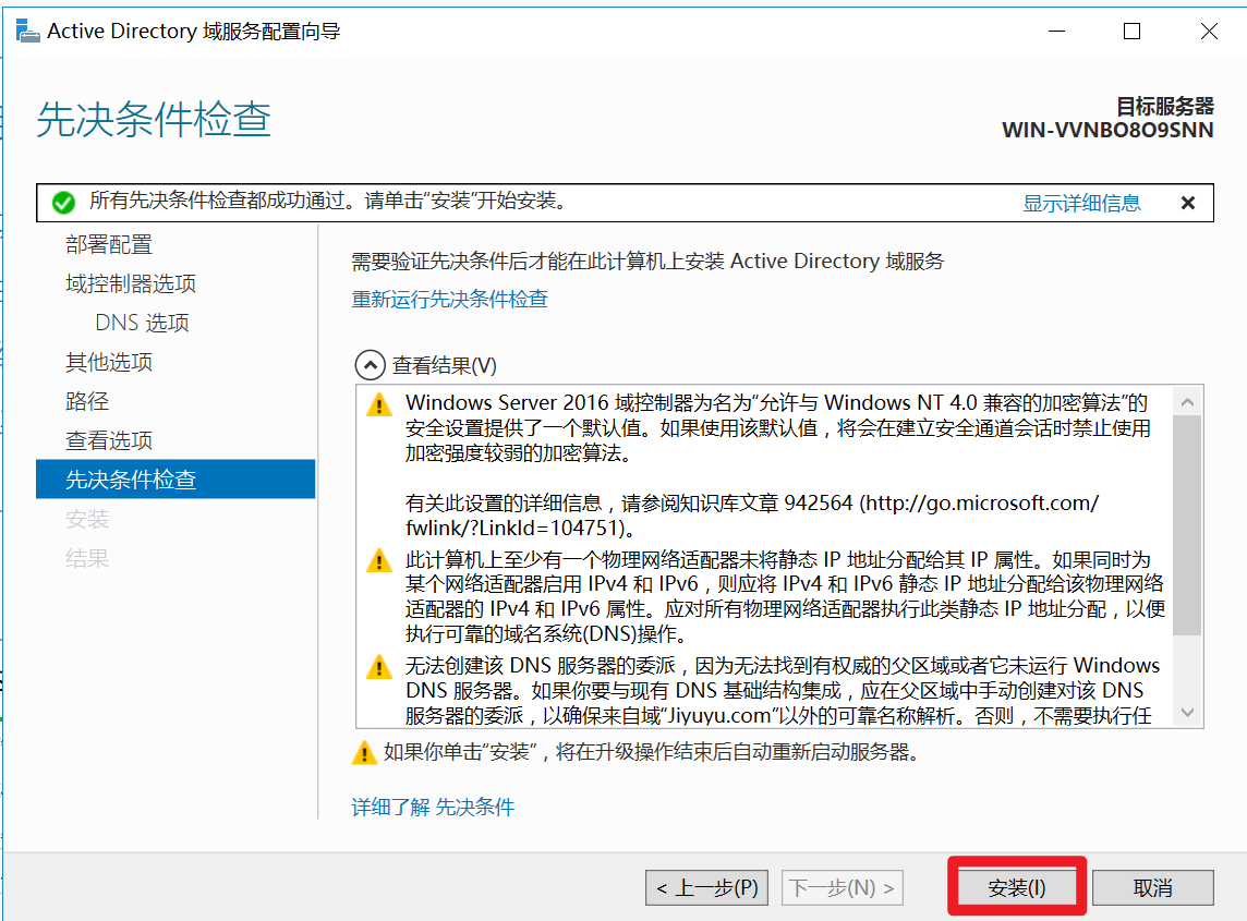 Windows server安装域服务