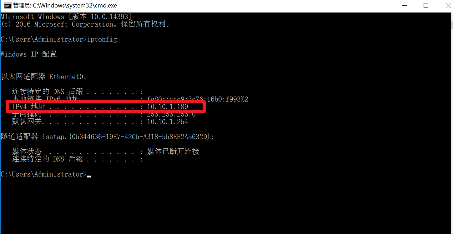查看Windows server的IP