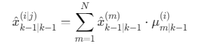 其中,μm(i)∣k−1μ_m^{(i)}∣_{k−1}μm(i)∣k−1为模型交互概率。