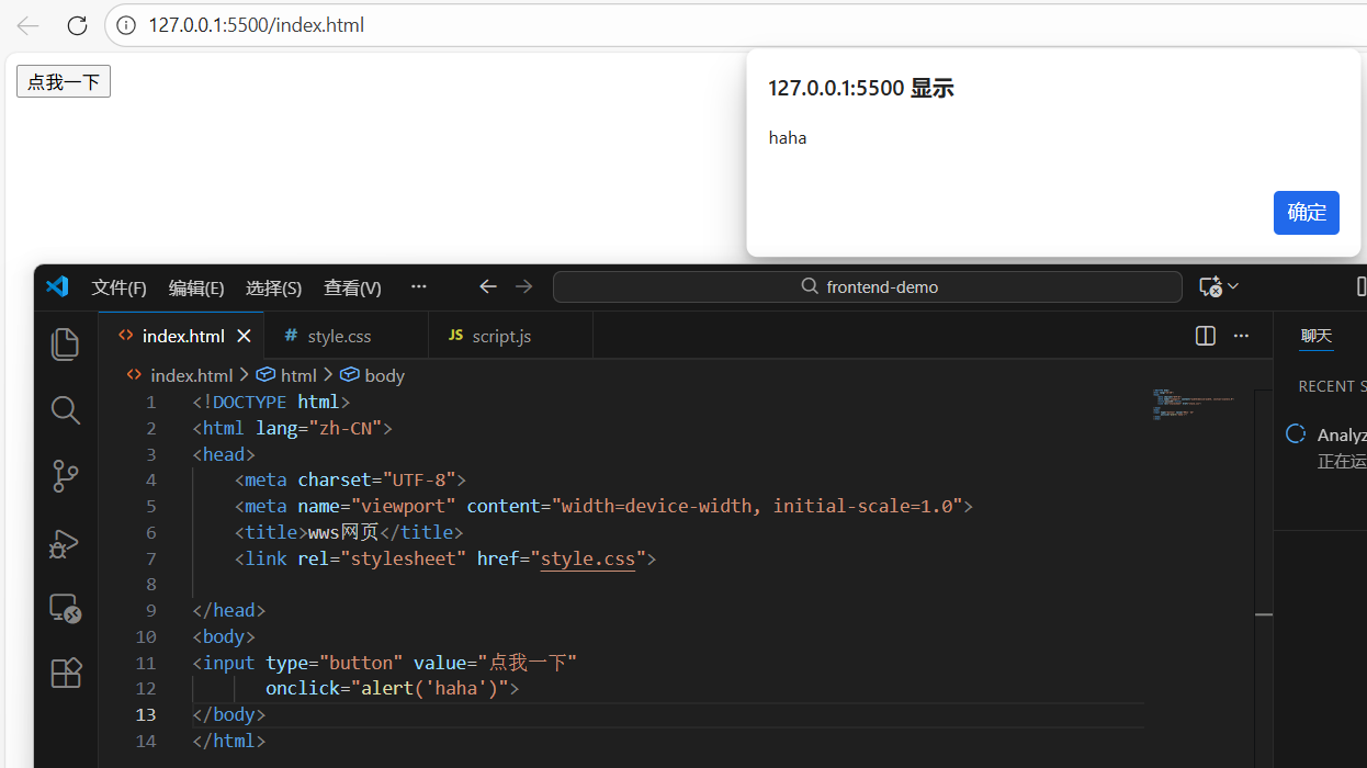 属性名 作用说明 常见元素 id元素唯一标识 所有元素 class类名(用于分组/样式) 所有元素 name表单字段名 input value表单的值 input / textarea href链接地址 a src资源路径 img / script type表单类型 input placeholder输入提示 input checked是否选中 checkbox disabled是否禁用 表单元素 readonly只读 input title悬浮提示 通用 alt图片替代文字 img 3.获取 / 设置 CSS