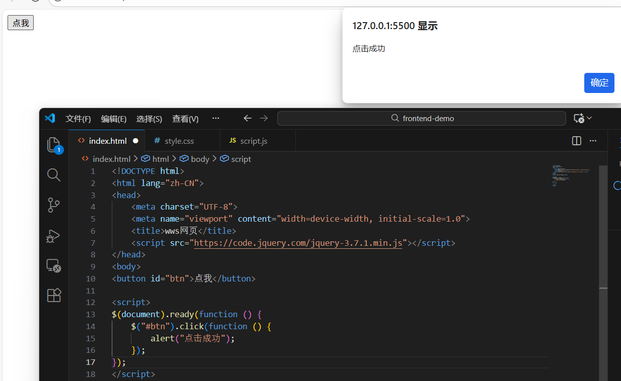 对比点 元素属性(attribute) CSS 样式(style) 属于谁 HTML 标签 样式系统 决定什么 元素本身的信息 / 行为 元素的外观 在哪写 HTML 标签里 style / CSS 文件 jQuery 方法 attr()css()会影响布局 有时会 会 常见例子 id、class、href、src、valuecolor、font-size、width、display