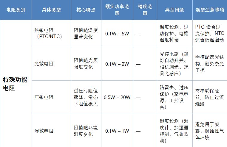 这类电阻的阻值会随温度、光照、电压等外部条件变化,常用于传感器和保护电路。