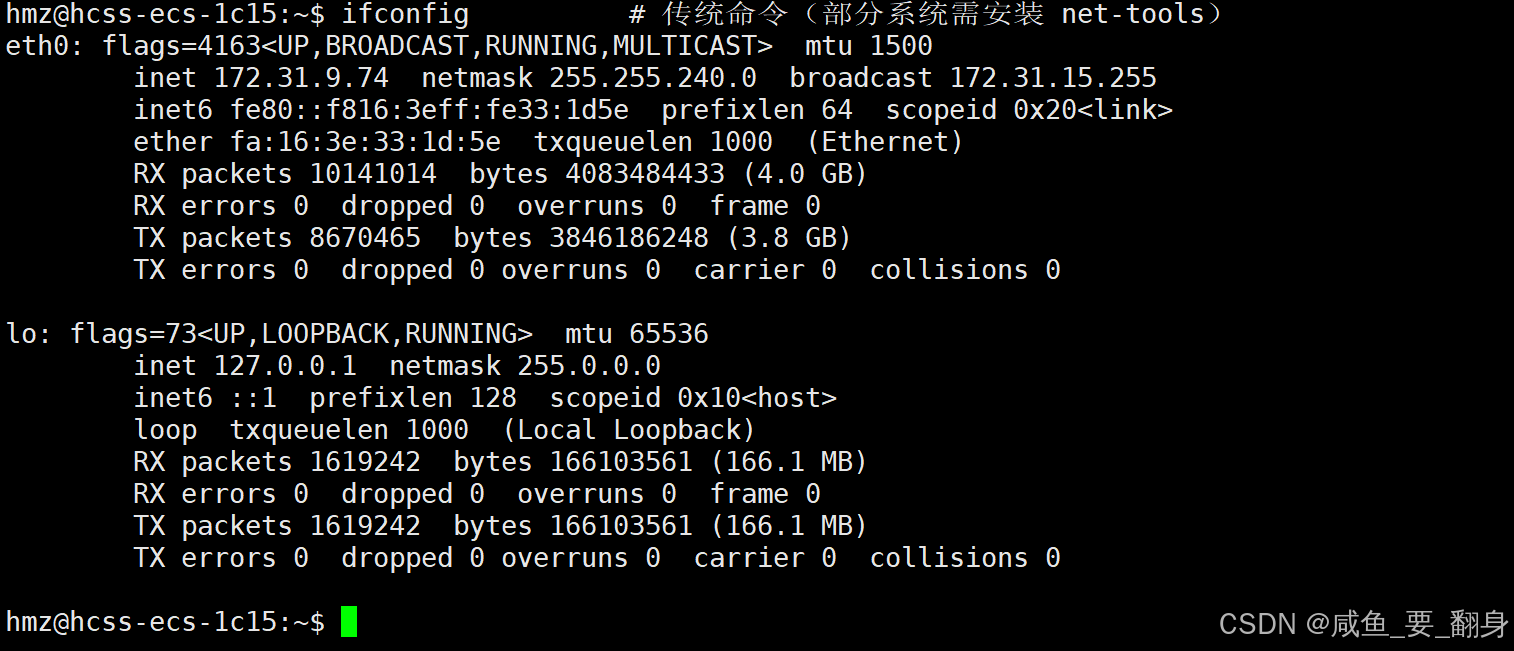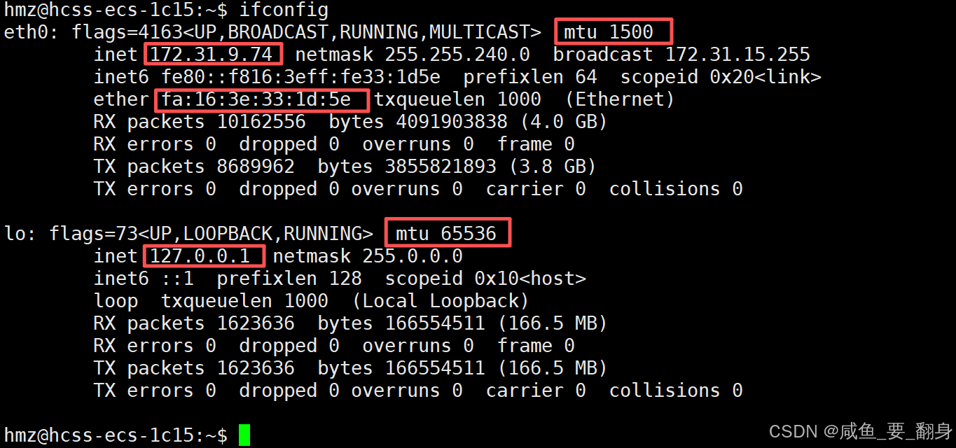 使用ifconfig命令可以查看IP地址、MAC地址和MTU信息。如下:
