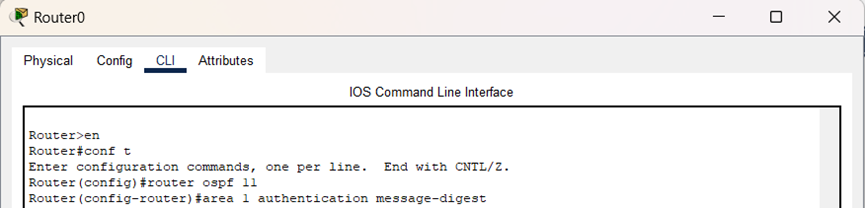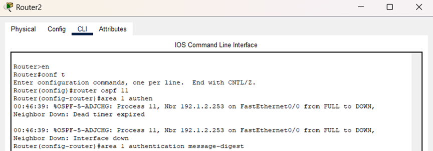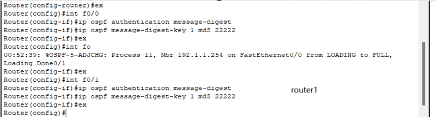 为相邻路由器实现互联的接口配置相同的密钥,如图所示:
