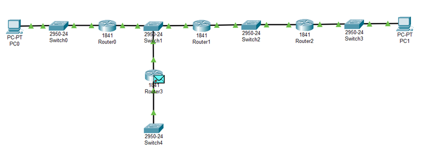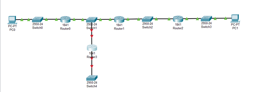 (1)放置和连接去掉入侵路由器后的设备,完成设备放置和连接后如图所示: