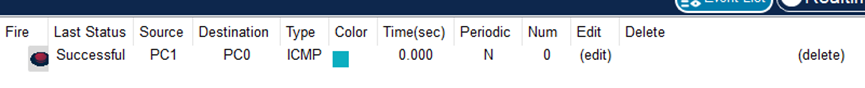 (4)启动PC0和PC1之间的ICMP报文传输,结果如下: