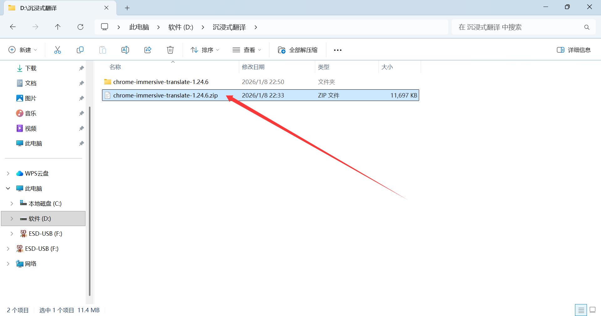 解压下载好的 Chrome 浏览器 zip 安装包