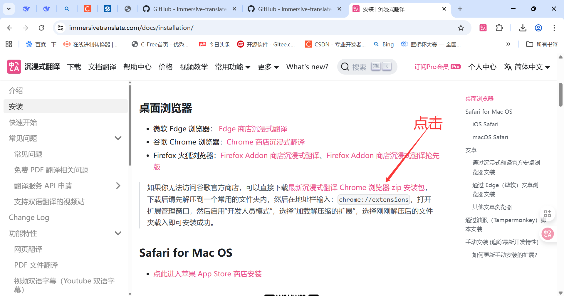 如果你无法访问谷歌官方商店,可以直接下载 最新 沉浸式翻译 Chrome 浏览器 zip 安装包。