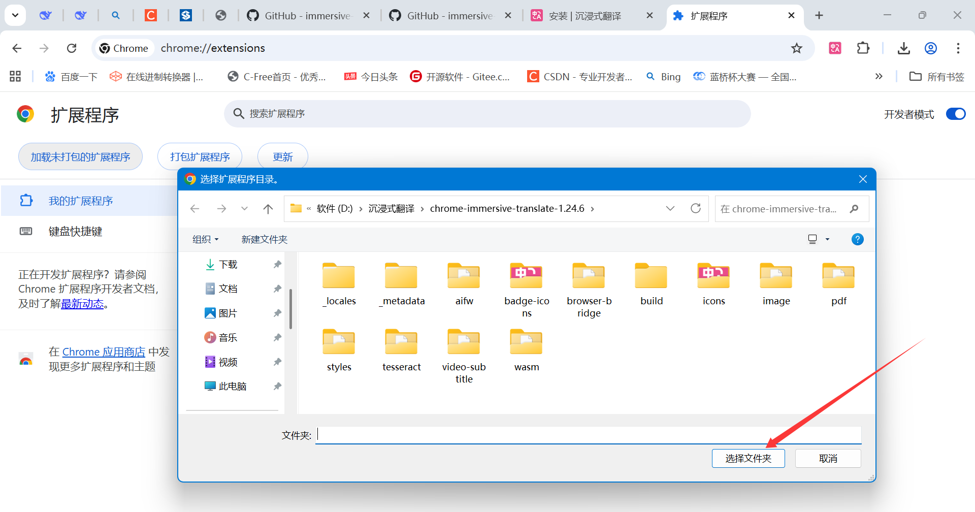 选择刚刚解压后的文件夹载入即可安装成功。