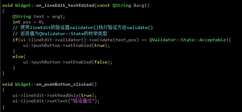 3)设置当LineEdit变化的时候的验证逻辑