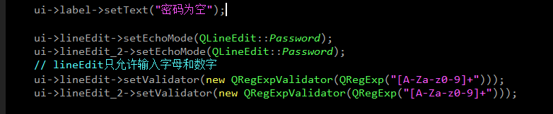 需要知道的是LineEdit中的验证器只有通过了验证才可以输入字符进去,与验证密码的逻辑不一致。如果将验证密码是否合法放在验证器中,那么就无法输入了。