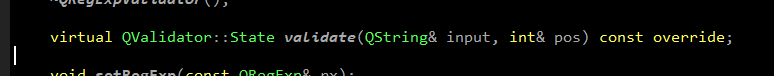 需要注意的是validate的返回值不是bool类型,而是一个QValidator::State枚举类型,里面包含了三种状态,按需设置即可。