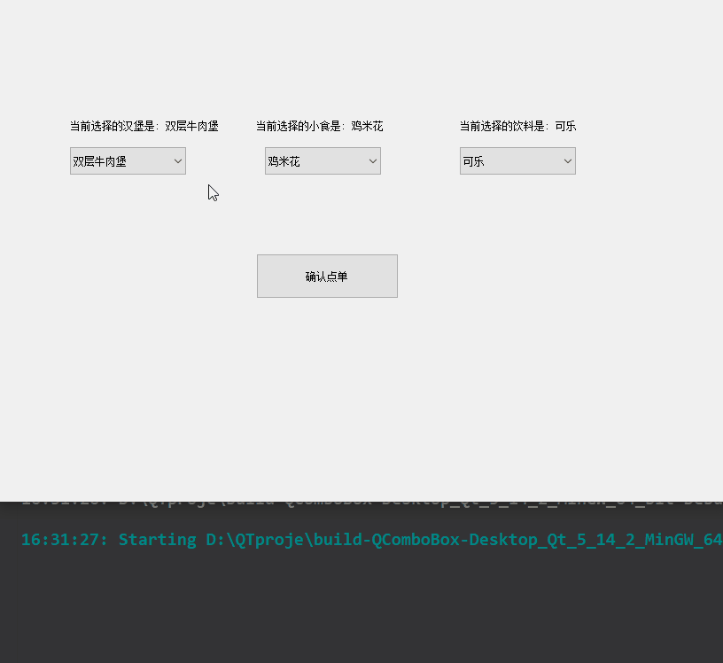 currentIndex() 当前获取条目的下标,从0开始计算,如果没有选中条目值为-1.