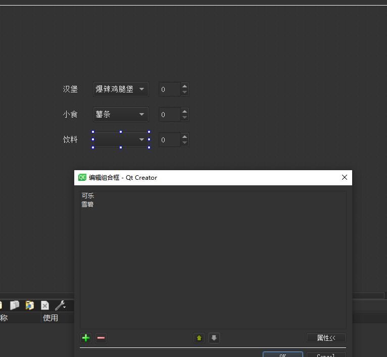 在UI界面双击ComboBox然后点击加号添加条目